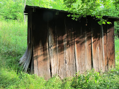Another shed's siding flares out like a skirt saying Come on in possums and 'coons, there's shelter to be had.
