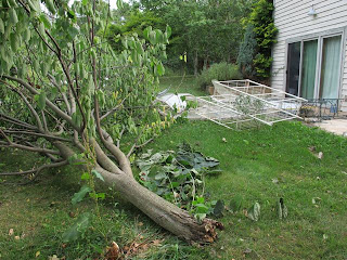 I didn't know it, but at the same time I was so thrilled and happy, a storm was brewing up along the shore of Lake Michigan and it had big plans for the Upper Midwest. It would travel down from northwest to southeast at 90 miles an hour, with what was essentially a brief, violent, several hundred mile wide linear hurricane (technically a derecho, with violent straight-line winds) and it would wipe out trees and power lines and pieces of homes; it would remove roofs and topple whatever was in its way from Michigan to Virginia. Which was considerable.