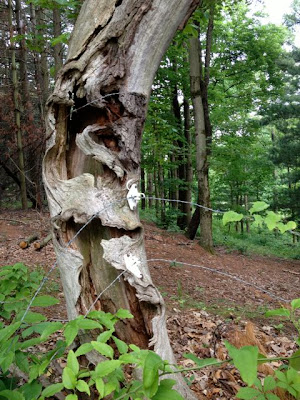 The mystery windows, black frames around summer's springing lushness. A coil of poison ivy, like a hangman's loop, furry and creepy.